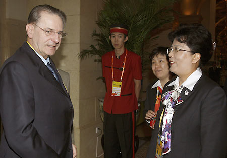 International Olympic Committee (IOC) President Jacques Rogge (L) arrives at the Beijing Hotel July 31, 2008. [Agencies]
