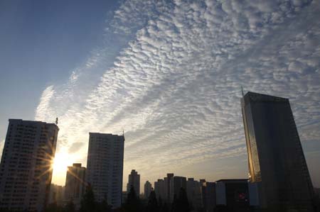 The sun rises in a blue sky in Beijing August 2, 2008. [Agencies]