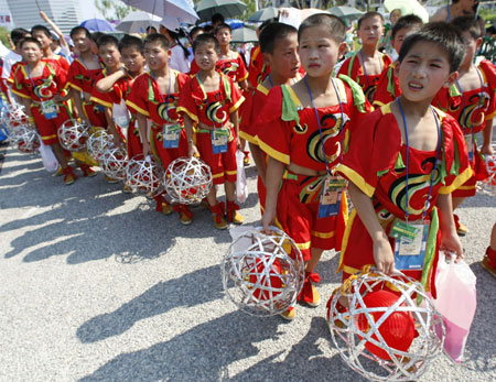 Performers wait to enter the National Stadium, also known as the Bird's Nest, ahead of a rehearsal for the opening ceremony of the Beijing 2008 Olympic Games August 2, 2008. [Agencies]
