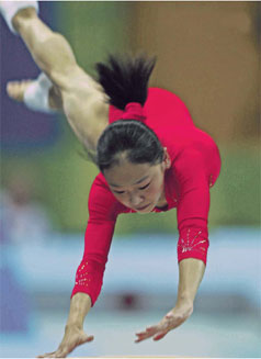 Chinese gymnast Li Ya training during the 2004 Athens Olympics. [China Daily]