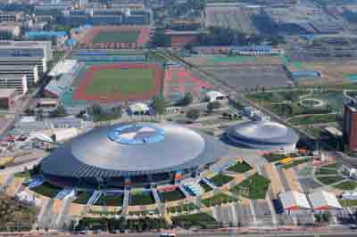An aerial view of the Beijing University of Technology Gymnasium, which will hold the competitions of badminton and rhythmic gymnastics, in this picture taken on August 2, 2008. [Xinhua]