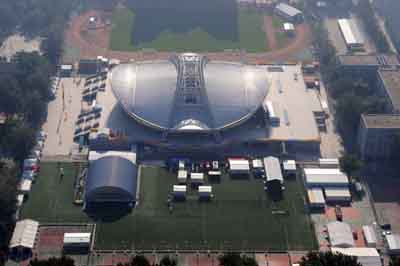 An aerial view of the Beijing Institute of Technology Gymnasium, which will hold some of the volleyball competitions, in this picture taken on August 2, 2008. [Xinhua]