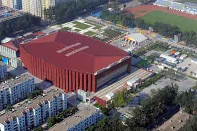 An aerial view of the Beijing Science and Technology University Gymnasium in this picture taken on August 2, 2008. Located in Beijing's Haidian District, it will hold the competitions of Judo and Taekwondo. [Xinhua]