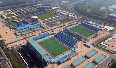 An aerial view of the Beijing Olympic Green Hockey Stadium, in this picture taken on August 2, 2008. [Xinhua]