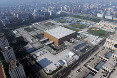 An aerial view of the Beijing Olympic Basketball Gymnasium and the Beijing Wukesong Sports Center Baseball Field, which are located in the Wukesong Culture and Sports Center, in Beijing's Haidian District, in this picture taken on August 2, 2008. [Xinhua]