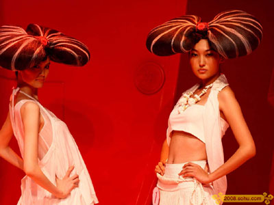 Is this the future of fashion? The space-aged champion outfits of the women's wear' group at the Chinese Invitational Creative Design Competition. The "Beijing Olympics, Chinese Fashion" series of activities was unveiled in Beijing’s 798 fashion design square August 3rd, 2008.[www.2008.sohu.com]