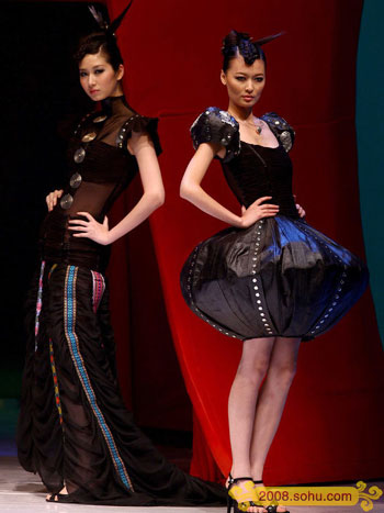 The First Runner-up of women's wear group of Chinese Invitational Creative Design Competition with a modern version of the billowing dresses from the Elizabethan Age in Britain. The "Beijing Olympics, Chinese Fashion" series of activities was unveiled in Beijing's 798 fashion design square August 3rd, 2008.[www.2008.sohu.com]