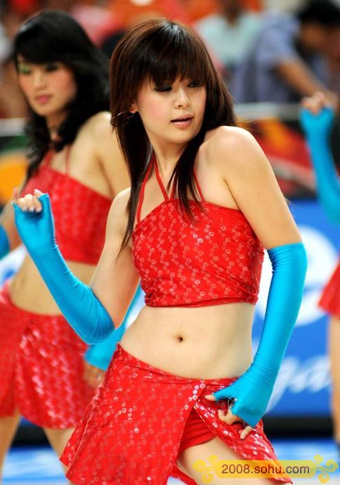 The Basketball Cheerleaders perform for the Diamond Cup which was held in southeast China's Zhejing Province on August 3, 2008. The Chinese team, lost to Australia 70 - 84, followed by Mali's first victory.