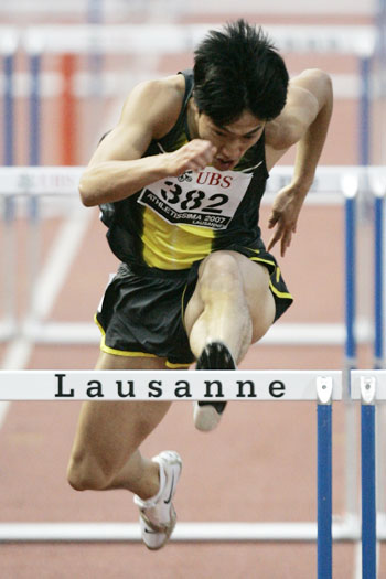 Liu Xiang of China competes in the men's 110 metre race at the IAAF Super Grand Prix athletics meeting in Lausanne July 10, 2007. Liu Xiang won the event in 13.01 seconds. [Agencies]