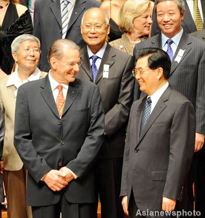 Hu praised the modern Olympic Movement for its "outstanding contributions to the progress of world sport, the strengthening of friendship among athletes and people of the world, and the promotion of world peace and development."