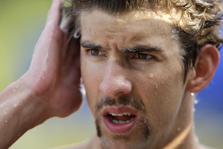 US swimmer Michael Phelps attends a training session in Singapore August 2, 2008. Phelps and the US Olympic swim team is training in Singapore as part of their preparation for the 2008 Beijing Olympics. [Agencies]