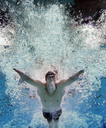 Michael Phelps swims to a win in the men's 100m butterfly at the US Olympic Swimming Trials in Omaha, Nebraska, July 5, 2008. Phelps won the race. [Agencies]