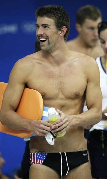 Michael Phelps of the U.S. attends swimming practice at the National Aquatics Centre, also known as the Water Cube, ahead of the Beijing 2008 Olympic Games August 5, 2008. [Agencies]