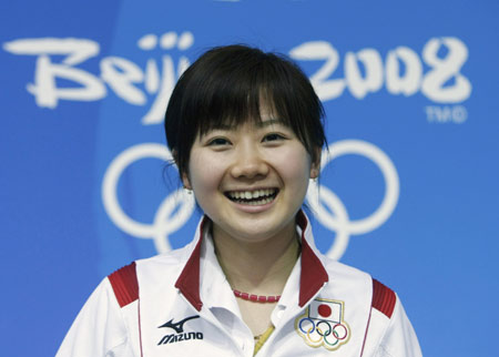 Japanese table tennis player Ai Fukuhara speaks to the media during a news conference at the Olympic Village in Beijing, ahead of the 2008 Olympic Games, August 7, 2008. [Agencies]