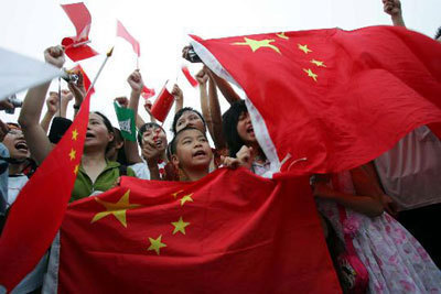 Cheering for the opening of Olympics at Tiananmen