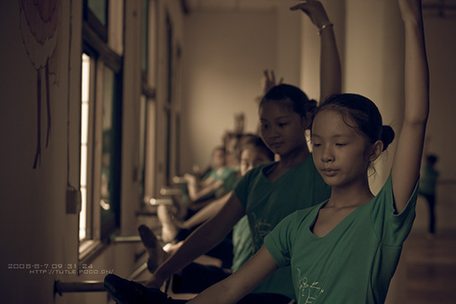 My counsin practices dancing in her summer dancing class.