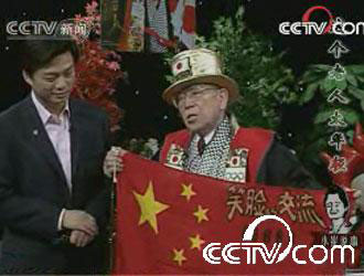 His standard attire is a golden hat, kimono and fans. This Olympic icon hopes to have more opportunities to communicate with people around the world in the future.