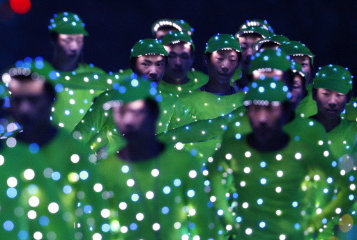 Performers take part in the opening ceremony of the 2008 Beijing Olympic Games in Beijing on August 8, 2008.