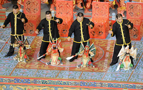 Dressed in traditional Chinese costumes, hundreds of actors sang the traditional Peking Opera, depicting a festive scene.