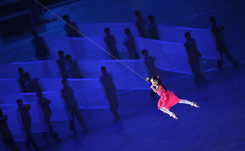 A young acrobat girl performs during the opening ceremony of the 2008 Beijing Olympic Games in Beijing on August 8, 2008. [Agencies]
