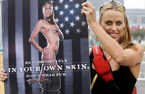 Amanda Beard, two-time Olympic gold medalist and US team captain, unveils her nude poster for People For the Ethical Treatment of Aminals (PETA) at the Olympic Village in Beijing on August 6, 2008. Beard joining PETA, unveiled her nude poster as a campign advertisement titled "Be comfortable in your own skin. Don't wear fur" ahead of the Beijing 2008 Olympic Games. [Agencies]