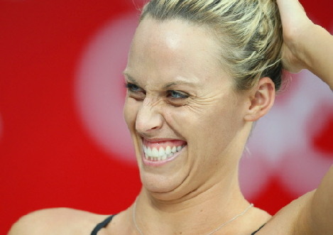 Amanda Beard of the US prepares for a training session at the National Aquatics Center, also known as the Water Cube, in preparation for the 2008 Beijing Olympic Games, in Beijing on August 7, 2008. The 2008 Beijing Olympic Games open on August 8. [Agencies]