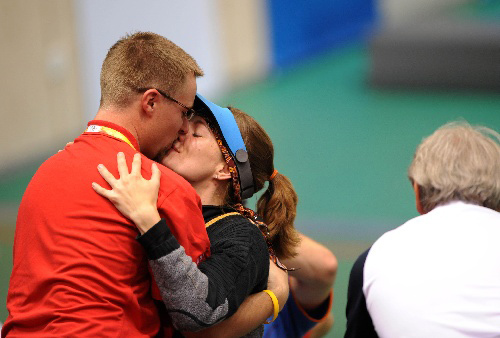 Sheding tears in excitement, the pretty shooter turned around to embrace and kiss her husband, American shooter and Olympic champion Matthew Emmons, who had been watching behind her throughout the qualification and the final.