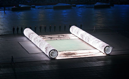 The picture was taken at the opening ceremony of the 2008 Beijing Olympic Games in Beijing on August 8, 2008.