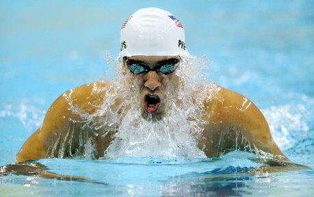 US swimmer Michael Phelps competes during the men's 400m individual medley swimming heat at the National Aquatics Center at the 2008 Beijing Olympic Games on August 9, 2008 in Beijing. Phelps placed first in the event. [Agencies] More Photos about Swimmers