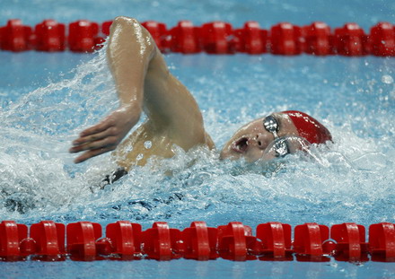 Zhang Lin of China competes in his men's 400m freestyle swimming heat at the National Aquatics Centre during the Beijing 2008 Olympic Games, August 9 2008. [Agencies] More Photos about Swimmers