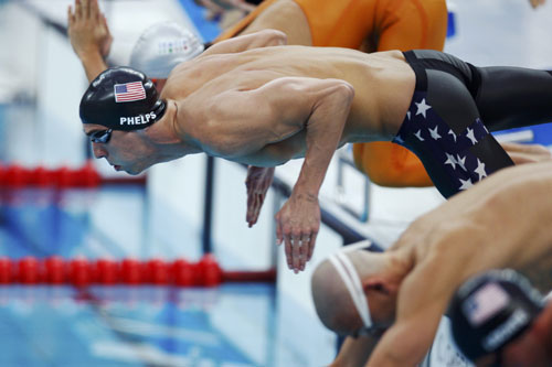 Michael Phelps of the US starts his men's 400m individual medley swimming final during the Beijing 2008 Olympic Games August 10, 2008. [Agencies]
