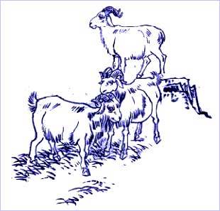 Images of sheep represent auspiciousness in ancient China. And, sheep and sun are both pronounced Yang in Chinese. The saying ‘san yang kai tai’ is from I Chjing (The Book of Changes) and says that spring returns to the earth and everything under the sun looks fresh and will have a prosperous future.