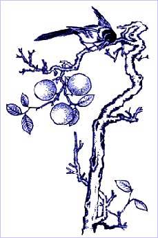 The magpie is considered a bird announcing good news. Longans are round-shaped, or yuan in Chinese. Another Chinese word meaning “the first” was also pronounced Yuan. There being three important levels of civil service examinations in ancient China, the pattern of Magpie and Three Longans conveys the wish “may you come out first at each level of the examinations.”