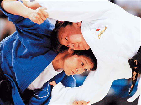 Chinese judoka Xian Dongmei battles Japan's Yuki Yokosawa during the 2004 Athens Games 52kg final. She won gold, beating Yokosawa. [Agencies]