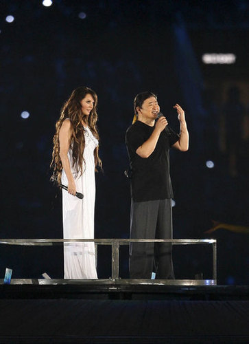 Chinese singer Liu Huan and British singer Sarah Brightman sing the theme song of the Beijing 2008 Olympic Games during the opening ceremony of the Games at the National Stadium August 8, 2008. [Xinhua] Click for video