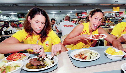 Athletes take supper at the dining hall in the Olympic village. [File photo]