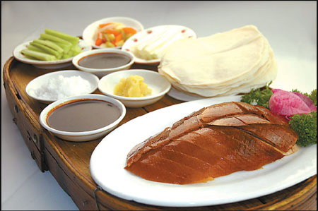 Dipped in sweet plum sauce and wrapped with spring onion in a thin pancake, the succulent slices of roast duck is now a must-have on most plates in the village.