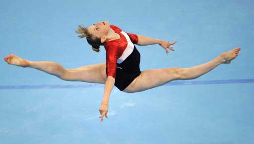 Belarus' Anastasia Marachkouskaya competes on the floor during the women's qualification of the artistic gymnastics event of the Beijing 2008 Olympic Games in Beijing on August 10, 2008. [Agencies]