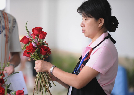A Chinese florist prepares bouquet of flowers for award ceremonies at the 2008 Beijing Olympic Games on August 10, 2008. [Agencies]