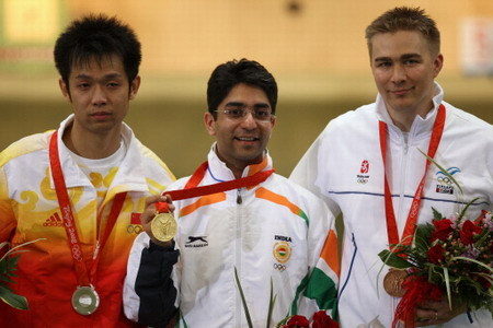 BEIJING -- Indian shooter Abhinav Bindra totaled 700.5 points to grab gold medal of the men's 10-meter air rifle after a hot chase in the final on Monday, winning his nation the first gold at the Beijing Olympic Games.