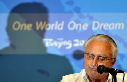 President of the Sapnish Cycling Federation Fulgencio Sanchez reacts during a press conference after Spanish cyclist Maria Isobel Moreno became the first athlete to fail a doping test at the 2008 Beijing Olympic Games on August 11, 2008 in Beijing. [Agencies]