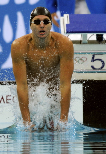 US swimmer Aaron Peirsol competes during the men's 100m backstroke swimming semifinal at the National Aquatics Center in the 2008 Beijing Olympic Games on August 11, 2008. [Agencies]