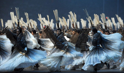 Artists perform during the opening ceremony of the 2008 Beijing Olympic Games at the National Stadium, also known as the "Bird's Nest", on August 8, 2008. The three-hour show at Beijing's iconic "Bird's Nest" National Stadium was set to see more than 15,000 performers showcase the nation's ancient history. [Agencies]