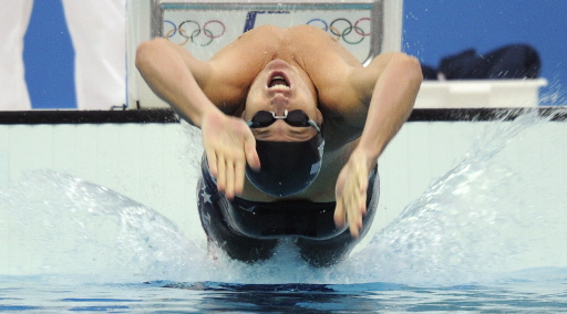 US swimmer Aaron Peirsol competes during the men's 100m backstroke swimming semifinal at the National Aquatics Center in the 2008 Beijing Olympic Games on August 11, 2008. [Agencies]