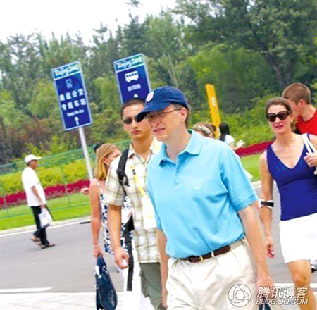 Bill Gates comes to the National Aquatics Center during the 2008 Beijing Olympic Games August 12, 2008. [www.qq.com]