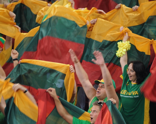 Lithuania's fans react during the men's preliminary round group A basketball match between Lithuania and Argentina at the 2008 Beijing Olympic Games on August 10, 2008.[Agencies]