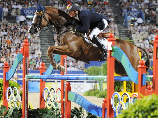 Germany's Frank Ostholt on "Mr. Medicott" jumps over a fence during the equestrian eventing team jumping competition of the 2008 Beijing Olympic Games on August 12, 2008 in Hong Kong. German team won Gold, Australia placed second and Great Britain gets the Bronze medal. [Agencies]