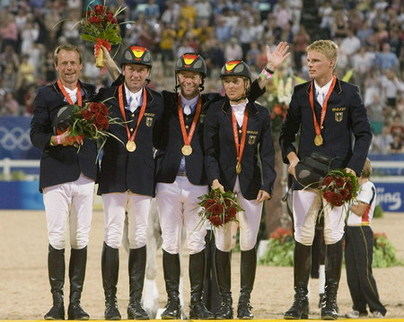 The victory holds special meaning for the German team because their show jumping gold medal in the Athens 2004 Olympic Games was stripped after the International Equestrian Federation announced it had disqualified rider Ludger Beerbaum and horse Goldever for a doping offense and awarded the gold medal to the United States.