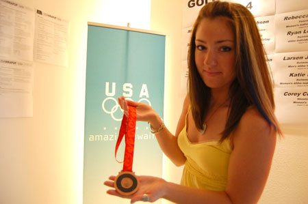 U.S. trap shooter Corey Cogdell showing her bronze medal