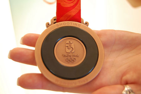 U.S. trap shooter Corey Cogdell showing her bronze medal
